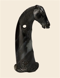 清 墨玉马首刀柄